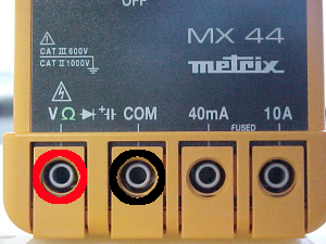 Si le talon de la flèche est du côté de la borne « com » du voltmètre alors celui-ci indique la tension électrique entre les deux bornes. Dans le cas contraire, il indique l'opposé de la tension électrique entre les deux bornes.